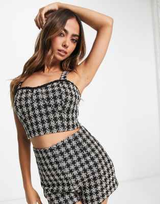 Miss Selfridge Boucle Crop Bralette In Mono Check Part Of A Set
