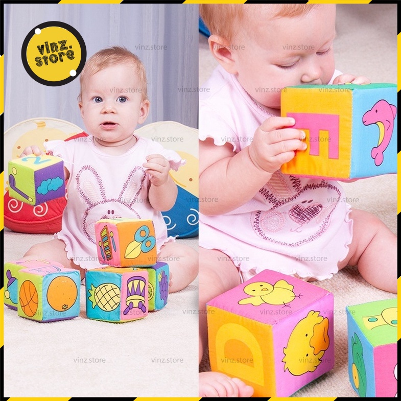 Fabric blocks for clearance babies, 6 in 1 Set Infant Baby Cloth Soft Rattle Building Blocks Educational Toys Cube Fabric Blocks Cloth Cube Toy clearance