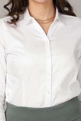 Formal white top clearance for ladies, Solid Regular Neck Cotton Stretch Womens Formal Shirt clearance