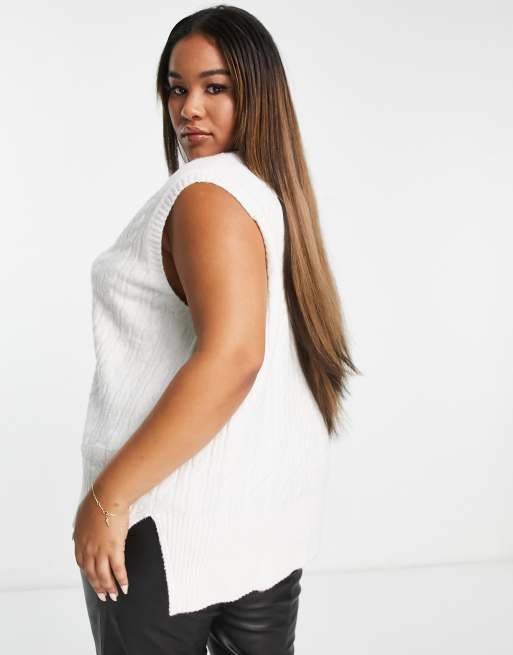 Nobody s Child Plus V neck oversized knitted tank top in cream ASOS