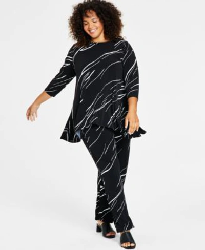 Alfani Plus Size Linear Printed Swing Top Wide Leg Pants Created