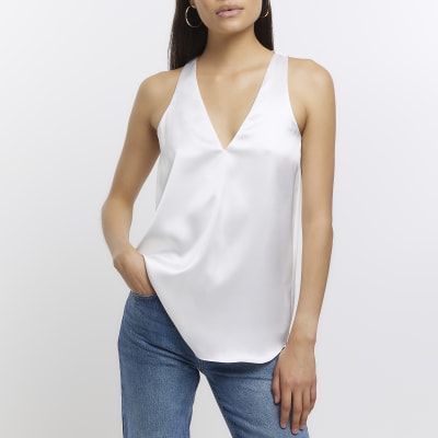 WHITE Summer Chiffon Top Sleeveless V Neck Chiffon Tank Wedding