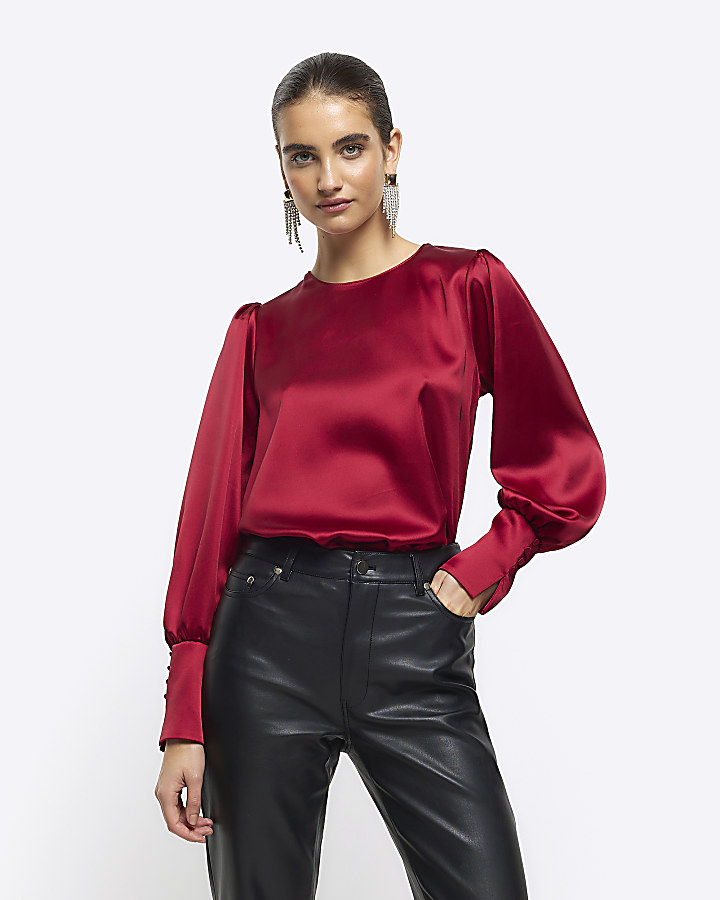 Ribbon Satin Blouse In Red OL UK SilkFred