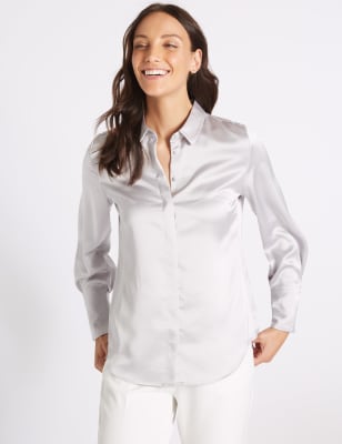 M&s clearance satin blouse, Satin Long Sleeve Shirt clearance