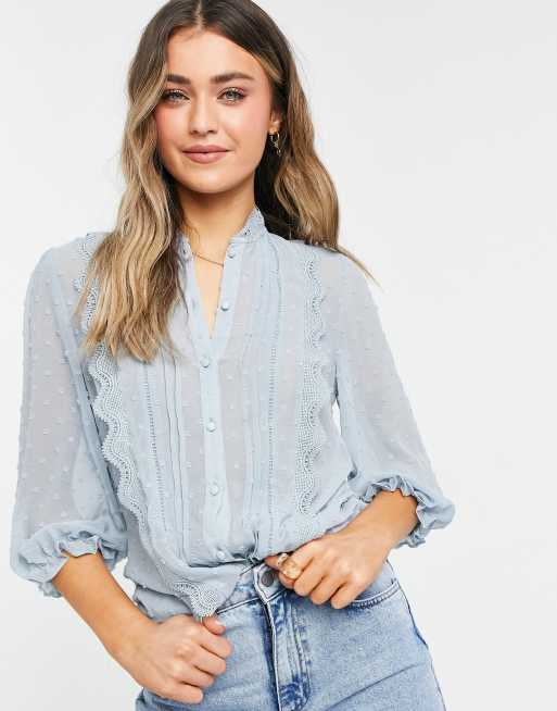Buy Oasis Frill Shoulder Pussy Bow Top In Navy 6thStreet Qatar