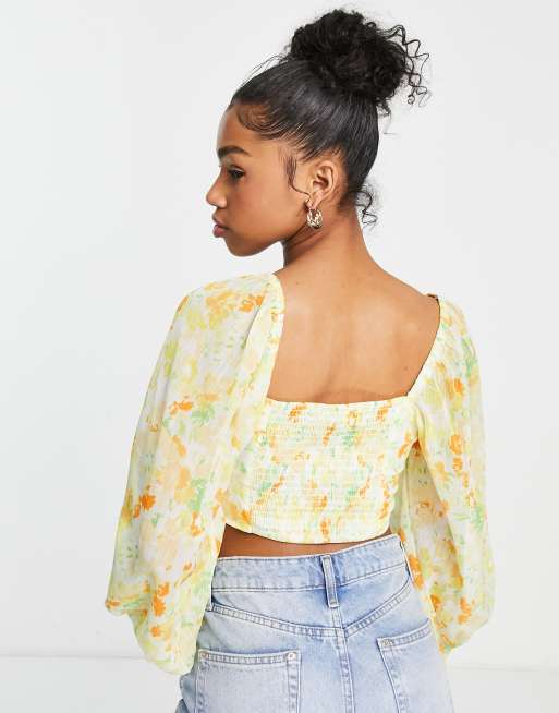 Miss Selfridge chiffon crop top in blurred floral ASOS