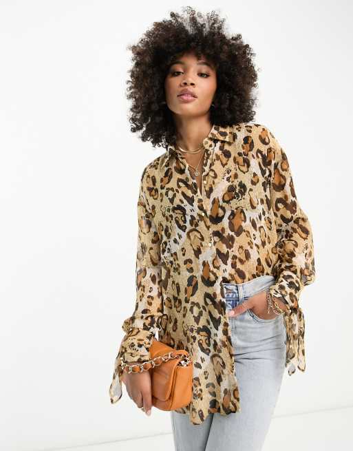 River Island leopard print chiffon blouse in brown ASOS