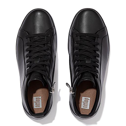 Black leather sneakers clearance high top, Women s Rally High Top Leather Sneakers FitFlop US clearance
