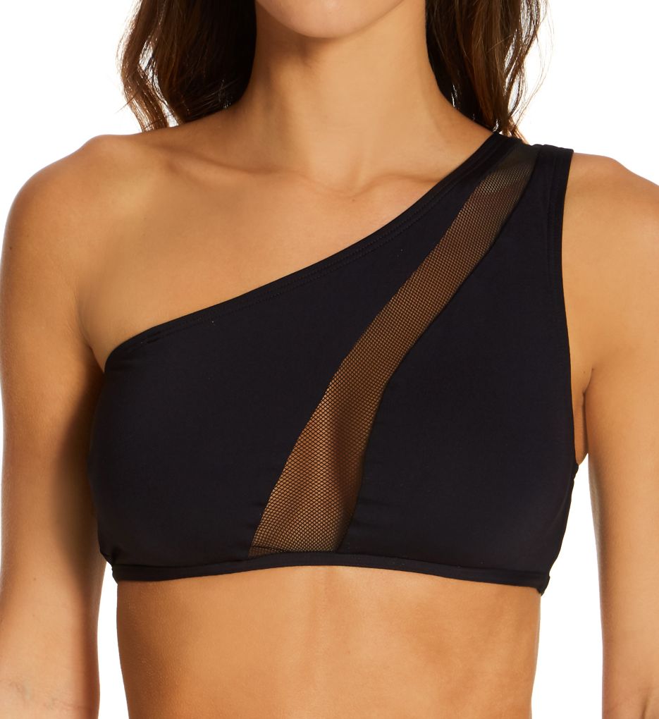 Vince camuto one clearance shoulder top, Mesh Cutouts One Shoulder Mesh Bikini Swim Top Black XS by Vince clearance