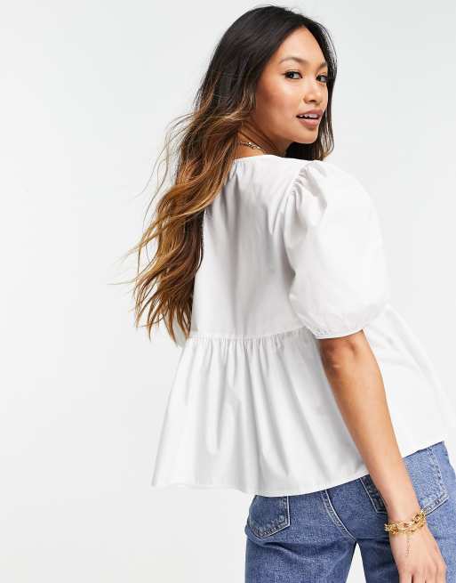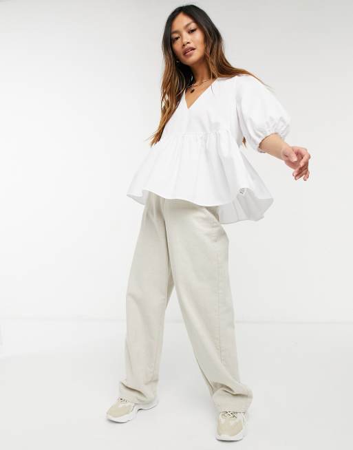 ASOS DESIGN smock top with v neck in white