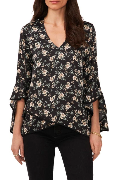 Vince Camuto Floral Print Bell Sleeve Top In Rich Black ModeSens
