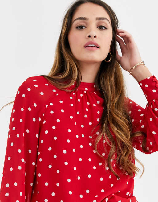 Red polka dot clearance blouse, Polka Dot Shirt Women Temu clearance