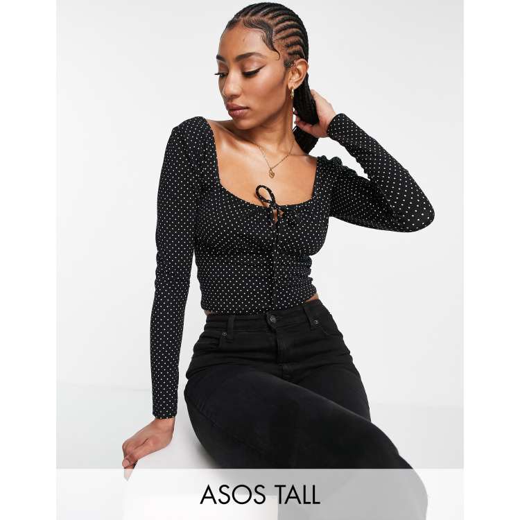 ASOS DESIGN Tall long sleeve square neck tie detail top in polka dot