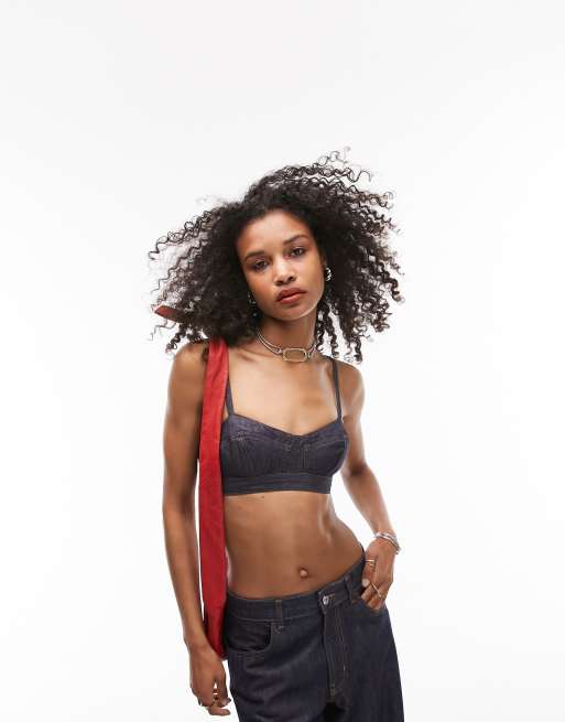 Topshop Bustier aus unbehandeltem Denim in Indigoblau Kombiteil