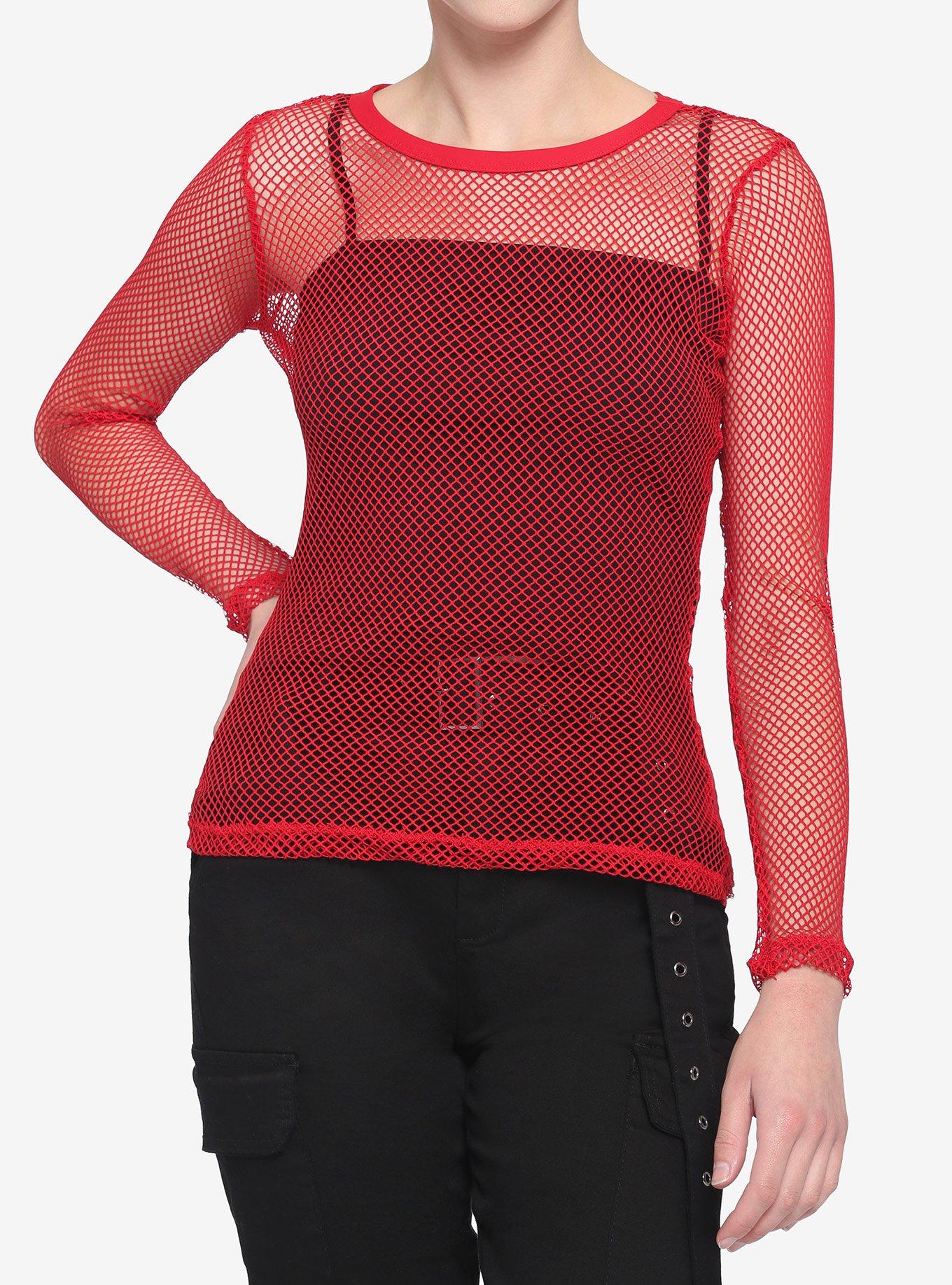 Red fishnet long clearance sleeve