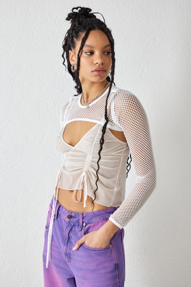 Fishnet clearance shrug top, Womens Sexy Mesh Fishnet Crop Top Long Sleeve Open Front Shrug Tops Shirts Blouses See Through Clubwear clearance