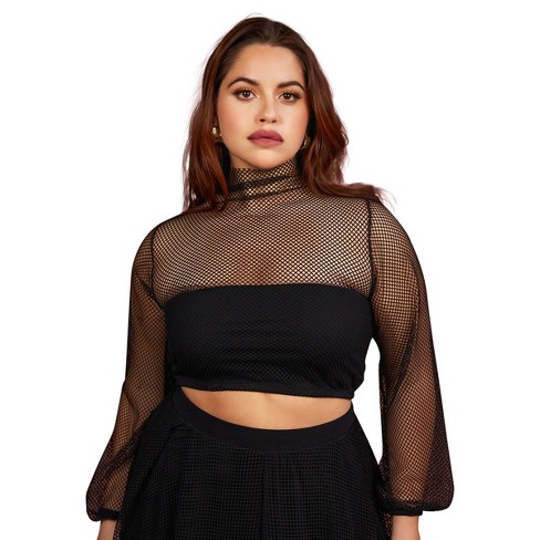 Rebdolls Women s Ariel Fishnet Long Sleeve Crop Top Target