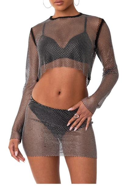 Edikted Embellished Sheer Fishnet Crop Top In Silver ModeSens