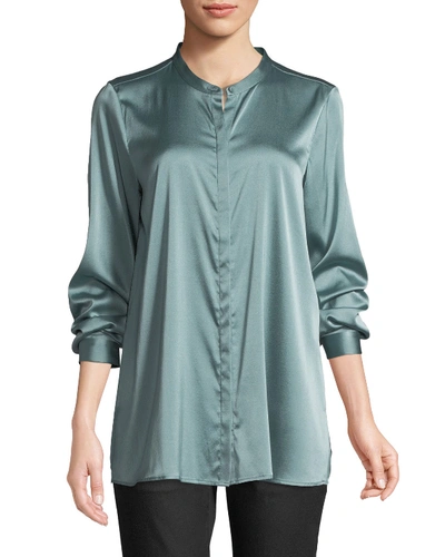 Eileen fisher silk clearance charmeuse top, Eileen Fisher Silk Charmeuse Mandarin collar Shirt Plus Size In clearance
