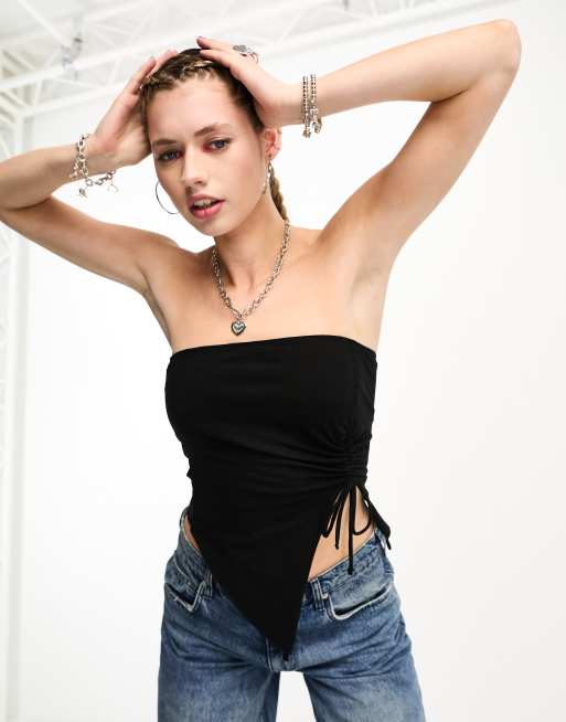 Stradivarius STR ruched front tube top in black ASOS