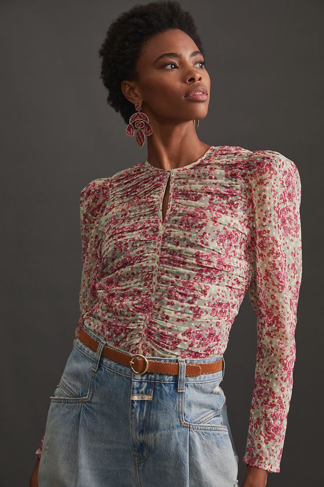 Ruched clearance floral top, Dainty Floral Ruched Top Black clearance