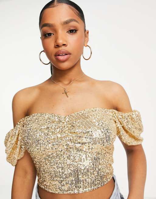 Gold sequin off clearance the shoulder top, Club L London Club L sequin off the shoulder mini dress and wrap clearance