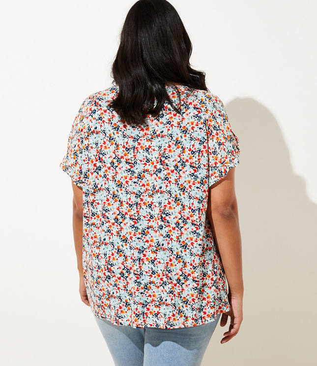 LOFT Plus Floral Petal Sleeve Mixed Media Top