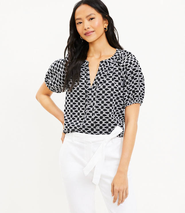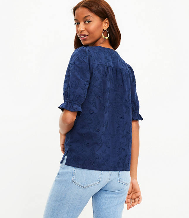 LOFT Floral Embroidered Ruffle Cuff Top ShopStyle