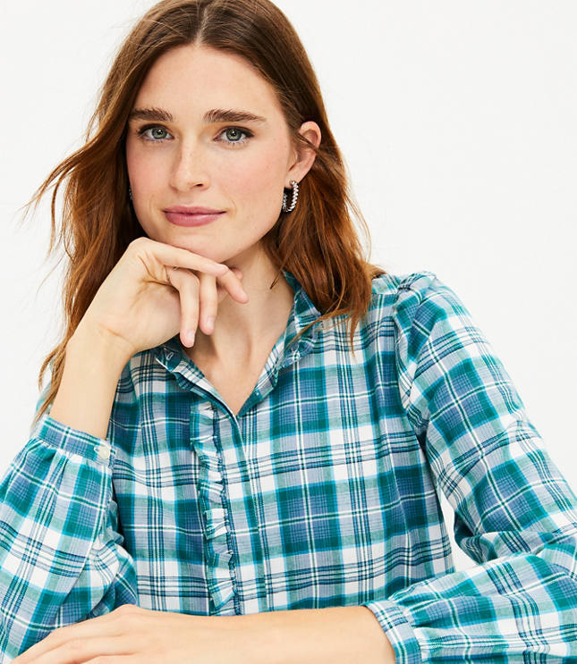 LOFT Plaid Smocked Henley Blouse ShopStyle Tops
