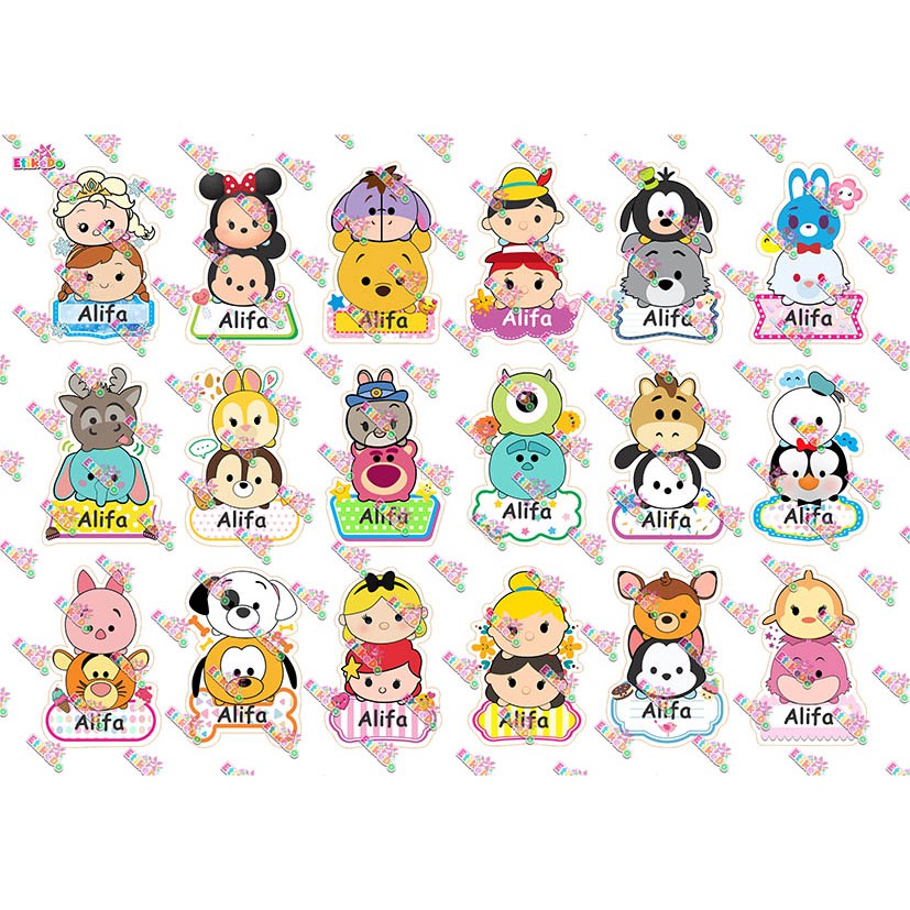 Jual LABEL NAMA TSUM TSUM 72 STIKER ANTI AIR ROBEK LUNTUR 4