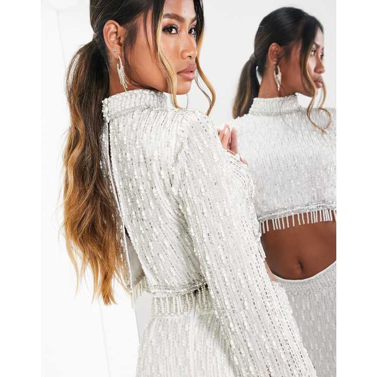 ASOS LUXE Curve cropped embellished top and midi skirt set with
