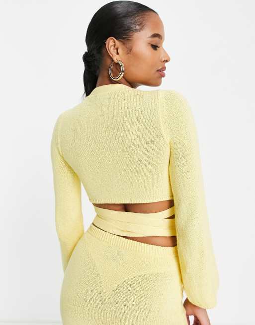 ASOS DESIGN Petite knit wrap top in yellow part of a set ASOS
