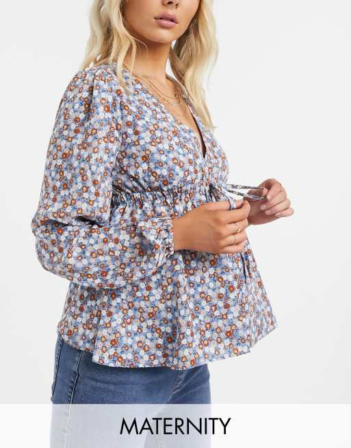 ASOS DESIGN Maternity causal smock top in ditsy print