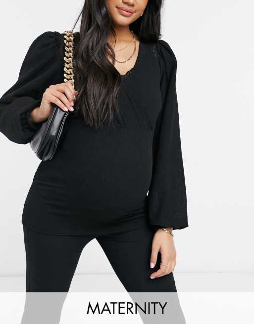 Mamalicious Maternity wrap front top with flared sleeves in black