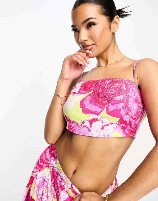 Something New cami crop top in neon rose print part of a set ASOS