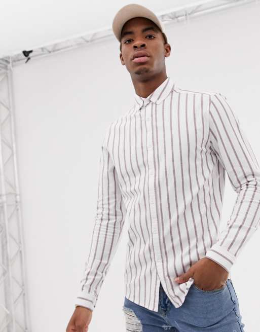 ASOS DESIGN skinny fit stripe shirt in white red ASOS