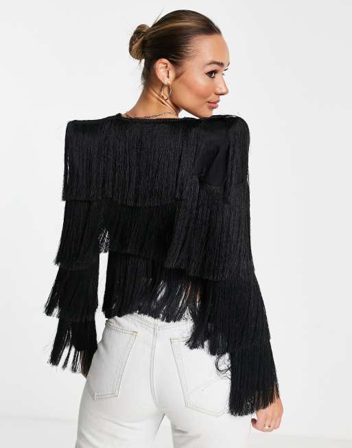ASOS LUXE fringe top with shoulder pads in hot pink ASOS