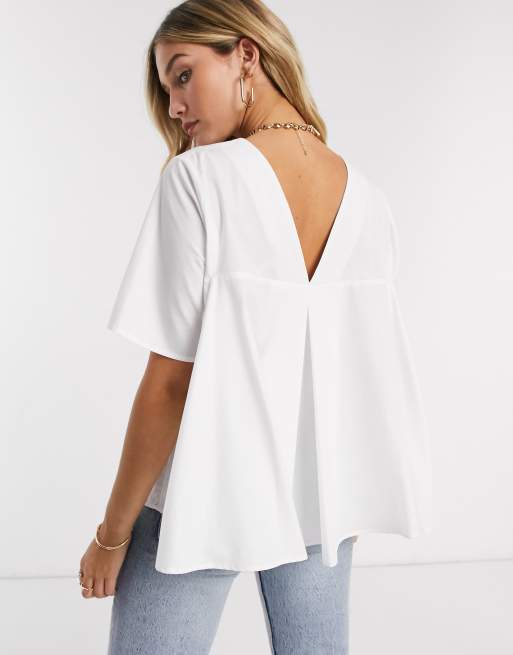ASOS DESIGN short sleeve cotton top with pleat back detail in white