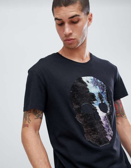 Jack Jones Originals T Shirt With Reversible Sequin Skull
