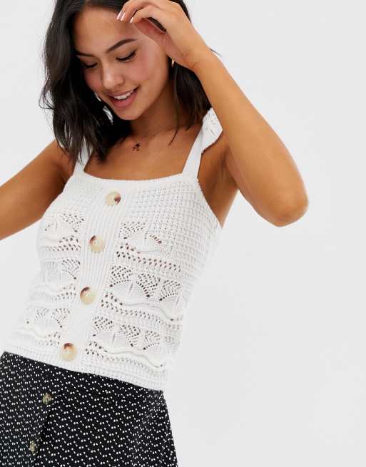 ASOS DESIGN crochet top with button and ruffle detail ASOS