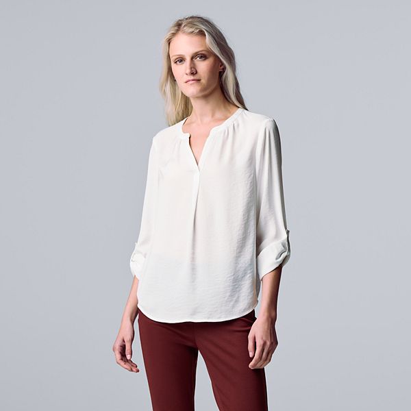 Women s Simply Vera Vera Wang Roll Tab Sleeve Popover Blouse