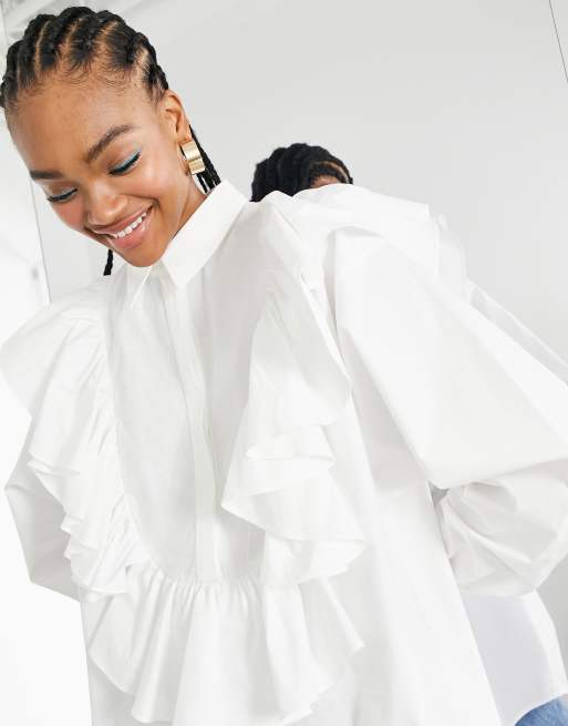 ASOS EDITION oversized cotton shirt with ruffle bib in white