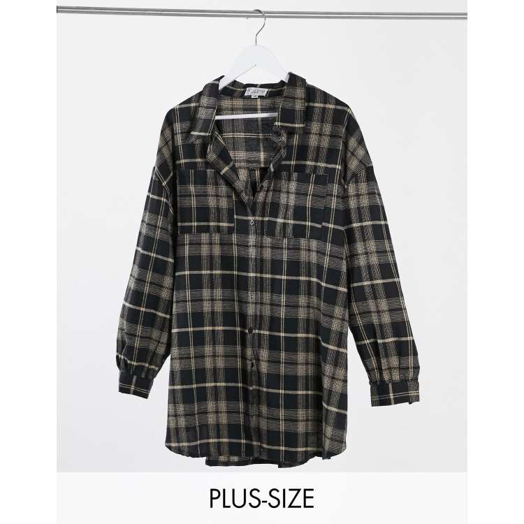In The Style Plus x Megan Mckenna longline shirt in black check