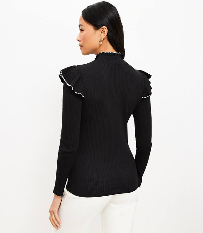 Ribbed clearance ruffle top, Ribbed Ruffle V Neck Top in Magenta clearance