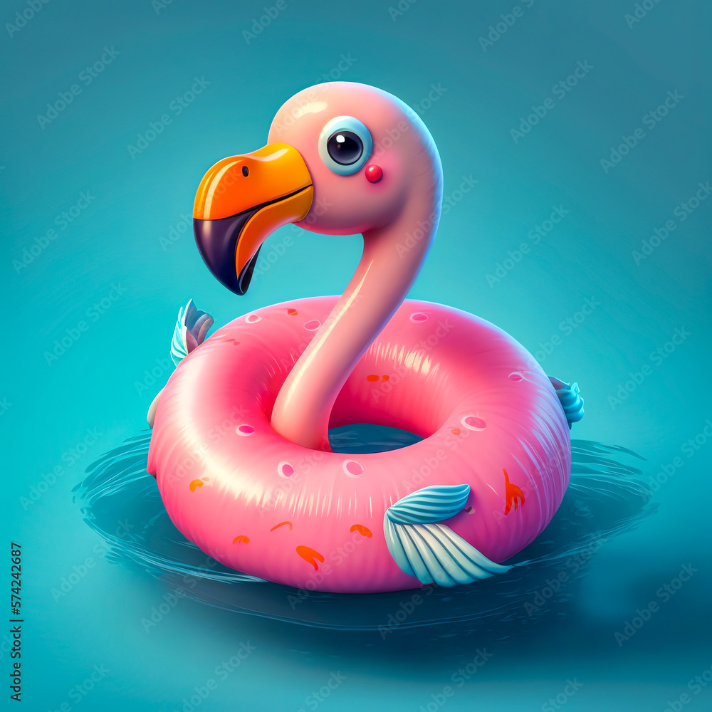 Summer Holiday Concept Pink Flamingo Float In Sparkling Pool 3d