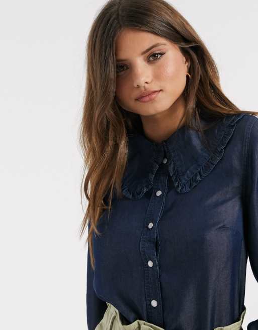Willow Navy Frilled Collar Shirt The Shirt Company