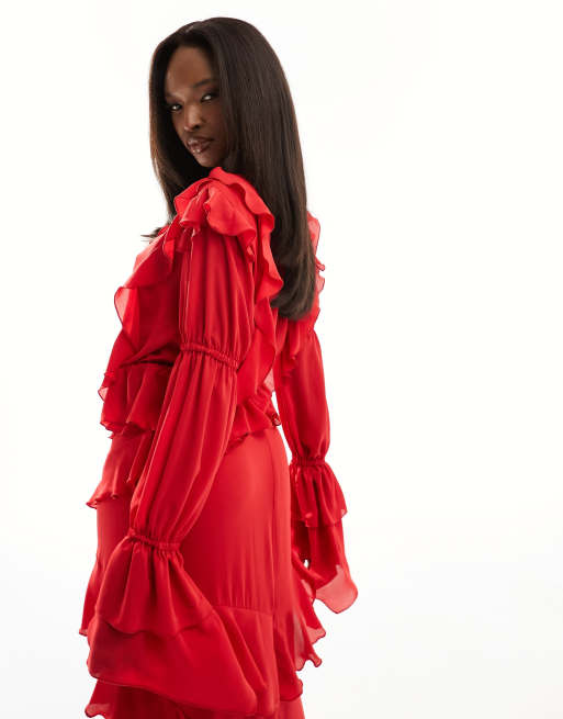 Red blouse with clearance ruffle sleeves, Daska long sleeve ruffle blouse in red part of a set ASOS clearance