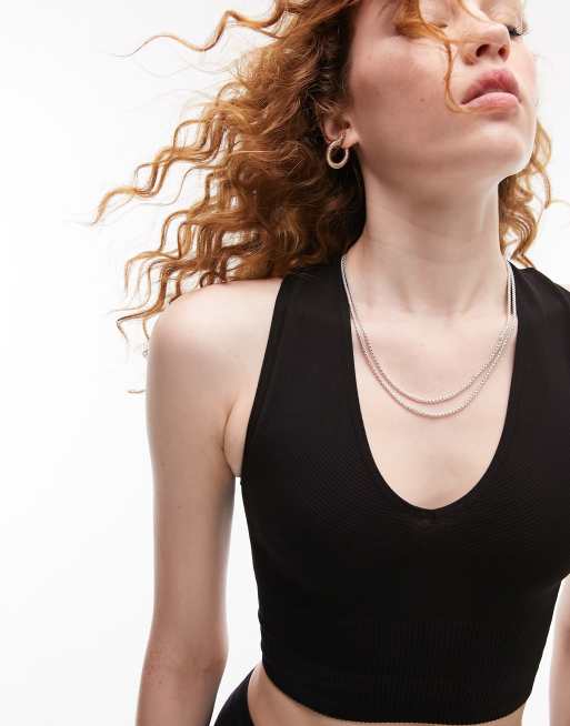 Black v neck clearance halter top, Topshop seamless v neck crop top in black clearance