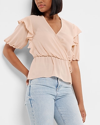 Express Faux Wrap Puff Sleeve Peplum Top Women s XS MainPlace Mall