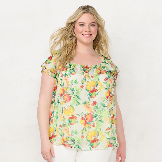 Kohls womens peasant clearance tops, Plus Size LC Lauren Conrad Flutter Sleeve Squareneck Peasant Top clearance